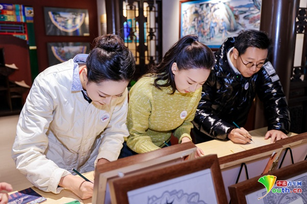 “青知讲说人这young探北京”系列青年体验活动走进颐和园,大学生和达人代表体验彩画制作。主办方供图
