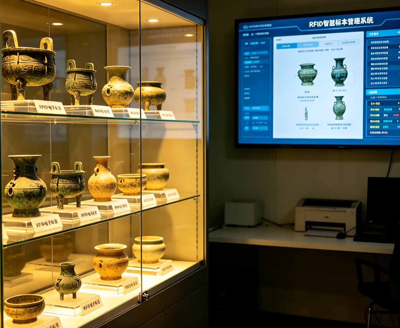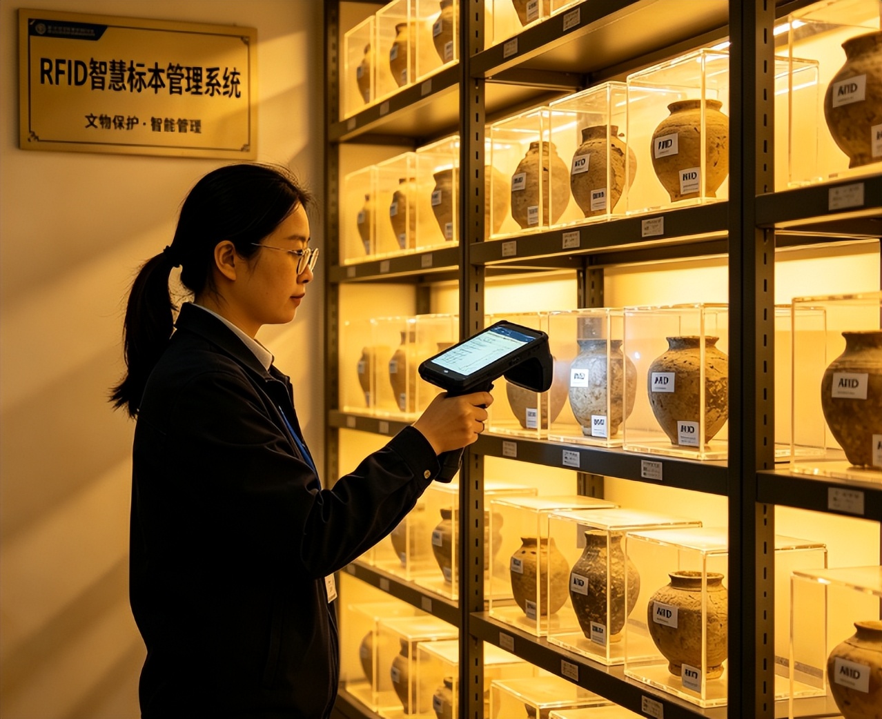面对上述管理困局,RFID(无线射频识别)技术为文物保护基地提供了标本智慧管理的系统化解决方案。RFID系统通过标签、阅读器和后台管理系统三个部分的协同工作,实现了对物品的无线识别和管理。一期建设聚焦满足标本库核心管控需求,核心硬件配置涵盖RFID电子标签、固定式读写器、手持终端和基础服务器/存储四类关键设备,通过软硬件的深度融合,系统性地破解了标本管理的四大核心难题。