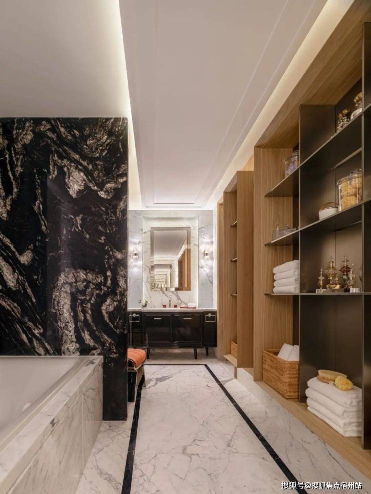 整体延续了卧室的摩登情调,灯光氛围流畅而PG电子通信明亮,一整面展示柜的植入,突破了卫浴空间的功能桎梏,兼顾实用性与美学表达。